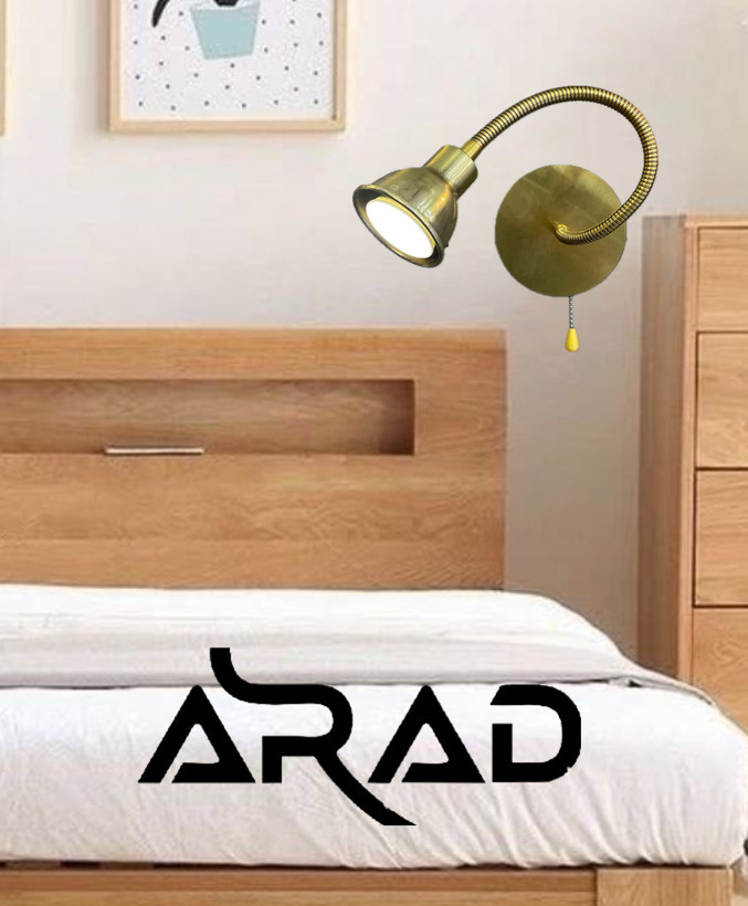 دیواری مدرن فنری آرادلایت رنگ طلایی مناسب دیوار کنار تخت کتاب خانه میز تحریر و مطالعه دارای کلید سر خود کلید نخی نوه لامپ هالوژن اس ام دی خرید مطمعن و به صرفه