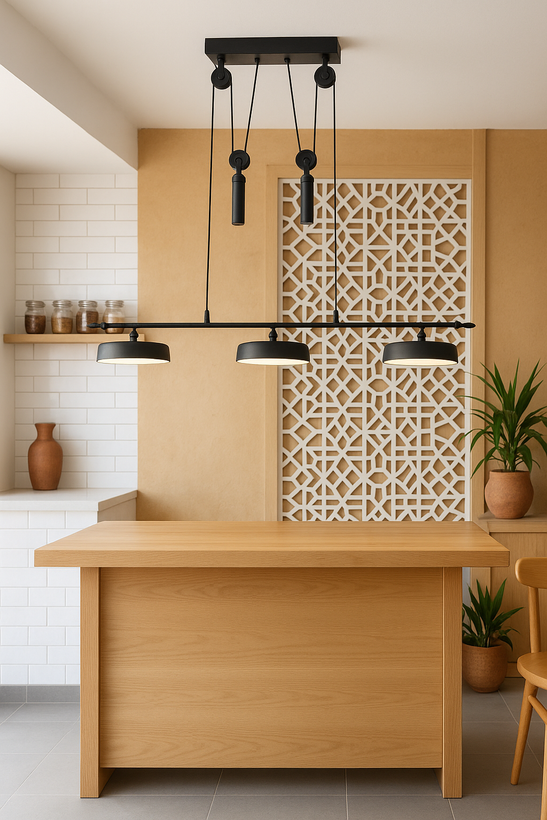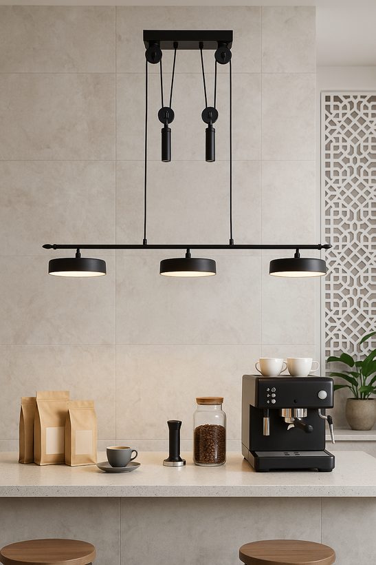 این آویز مدرن با طراحی مینیمال و بدنه مقاوم، گزینهای ایدهآل برای فضاهای حرفهای و خانگی است. ارتفاع چراغ بهصورت آسانسوری و کاملاً قابل تنظیم بوده و امکان هماهنگی دقیق با ارتفاع میز یا فضای نصب را فراهم میکند.