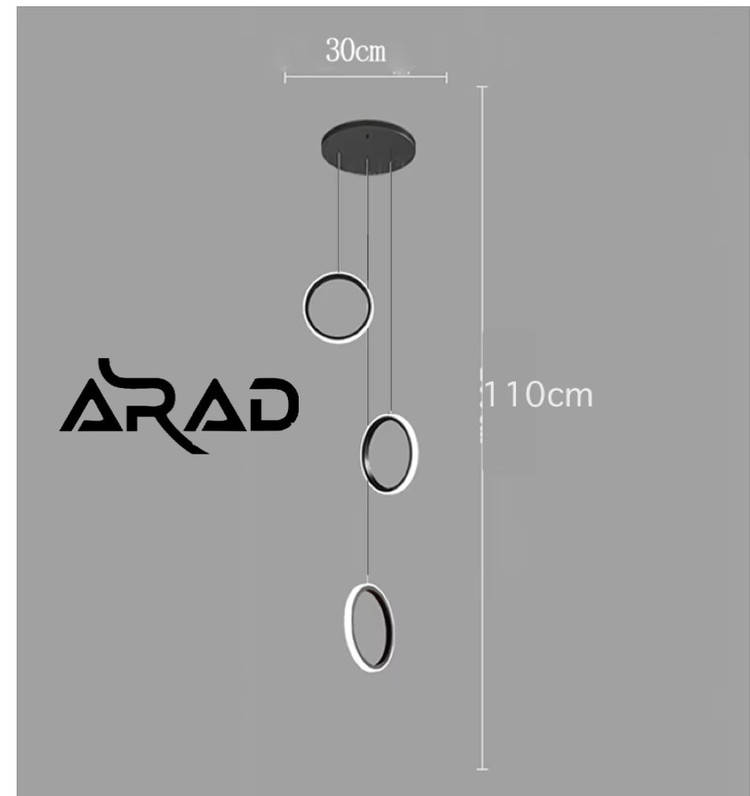 P806/3 آویزآراد لایتینگ رینگ لامپ smd با نور نچرال قابلیت تنظیم ارتفاع قطر هر رینگ ۲۰ سانتیمتر رنگ بدنه :سفید و مشکی قابل سفارش در تعداد شعله مختلف از تک شعله به بالا وبا قیمت مناسب و یک سال گارانتی خرید به صرفه برای مشتری
